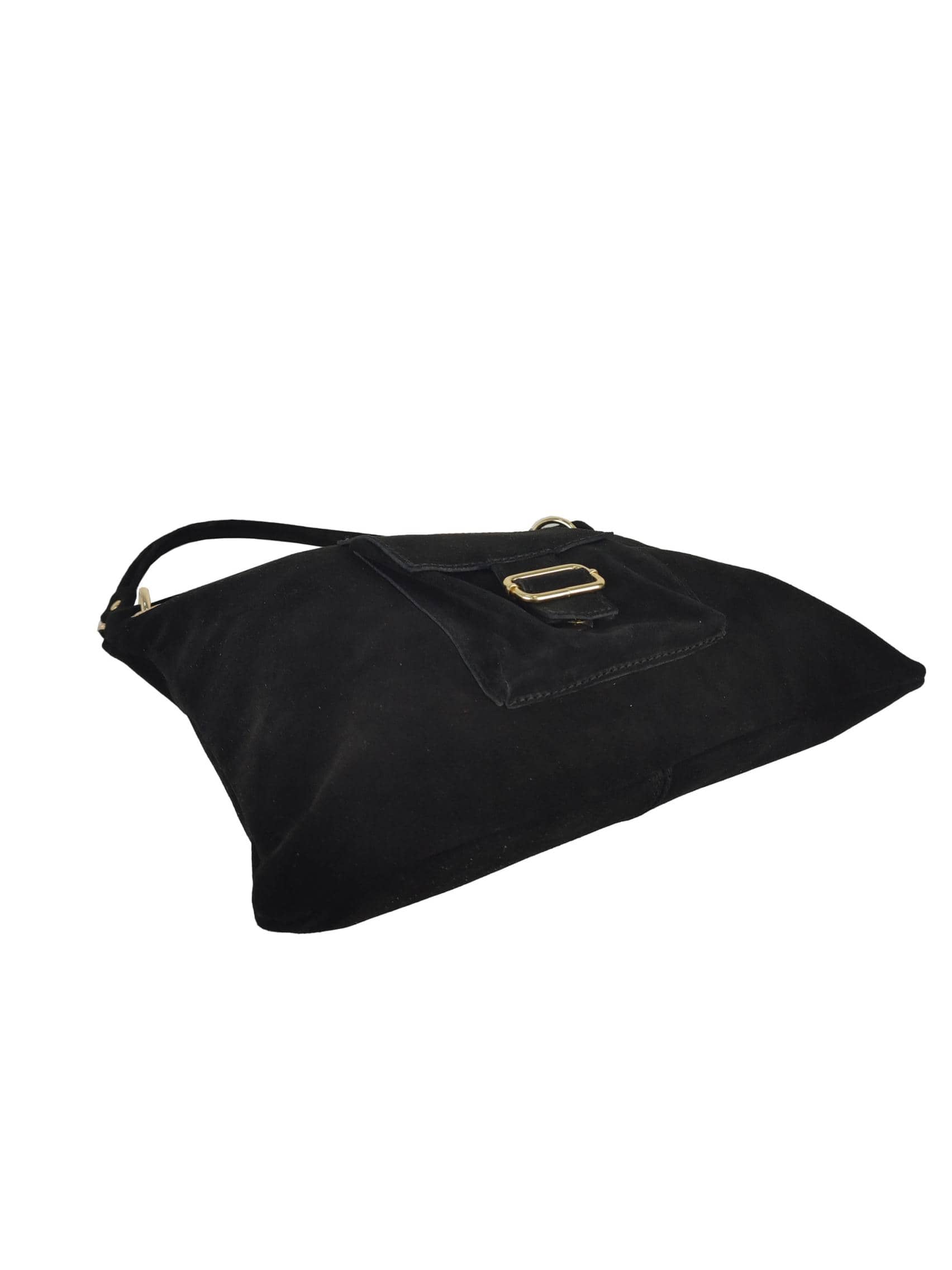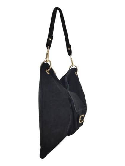 Front pocket with clip closure and decorative buckle