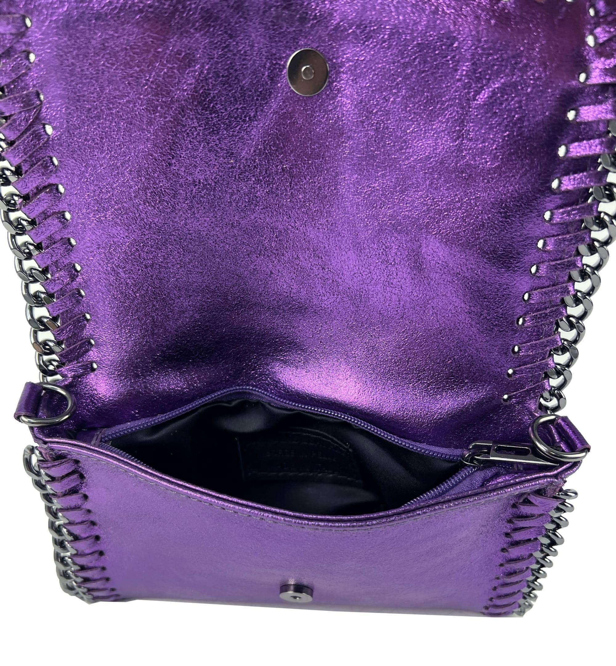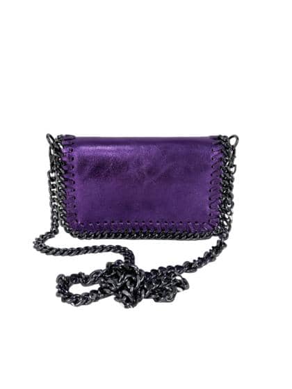 - Removable shoulder strap in diamond-cut silver chain
