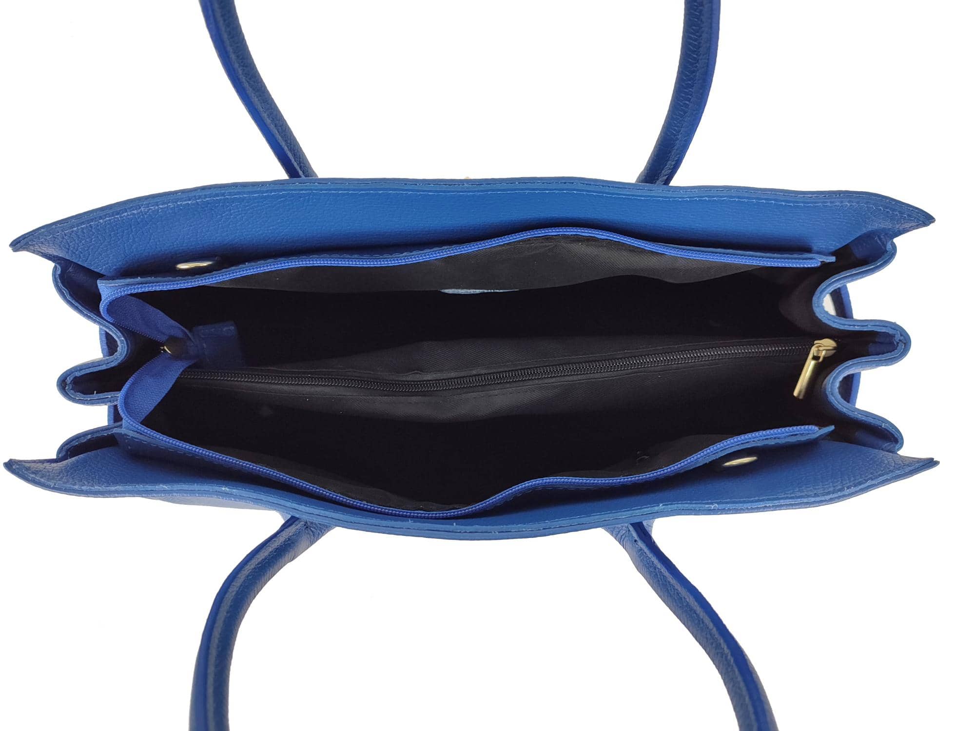 - Two compartments divided by a zip pocket